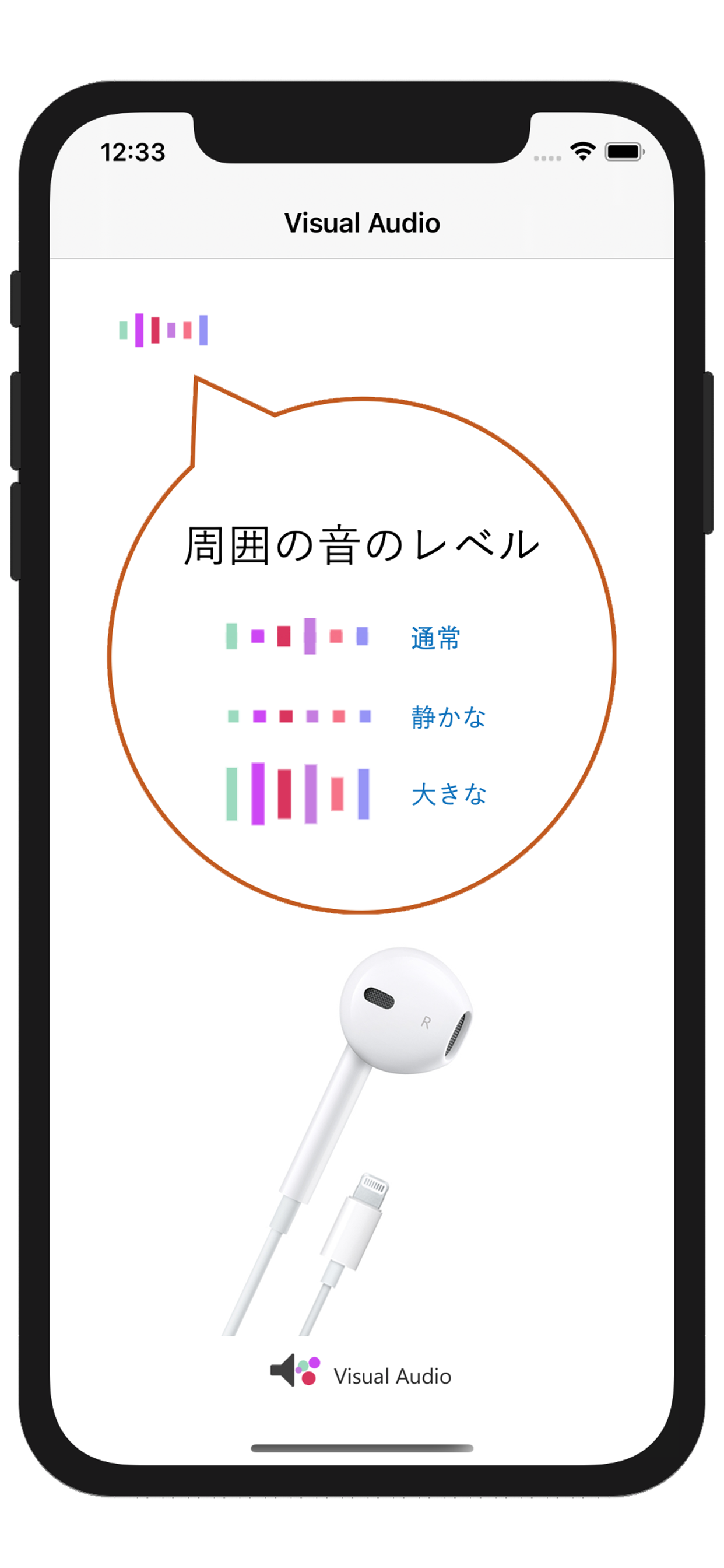 - 周囲の音の大きさに応じて視覚的に表現するレベルメーター。